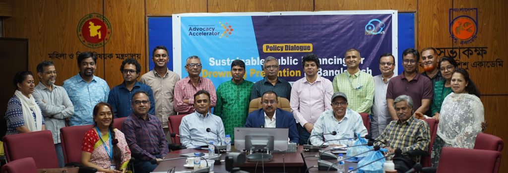 At the dialogue, a research-based policy brief was presented by Somosti. The brief noted that drowning is one of the leading causes of child mortality in Bangladesh, with more than 14,000 young children dying each year. It highlighted that proven, effective interventions—such as community-based childcare centres, swimming training, and awareness initiatives—have already been successfully implemented by the government. However, these initiatives remain largely project-based and are not included in long-term government budgets, putting their continuity and expansion at risk. The brief stressed the need for sustainable public financing, as well as exploring additional financing avenues for drowning prevention.